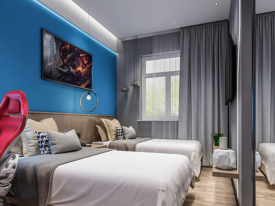 电竞酒店是一种依托于电竞游戏的新型酒店,顾客不仅可以享受媲美网吧的高品质电竞体验,还可以拥有住酒店的舒适体验,下面岚禾酒店设计为大家介绍,电竞酒店装修设计方案: