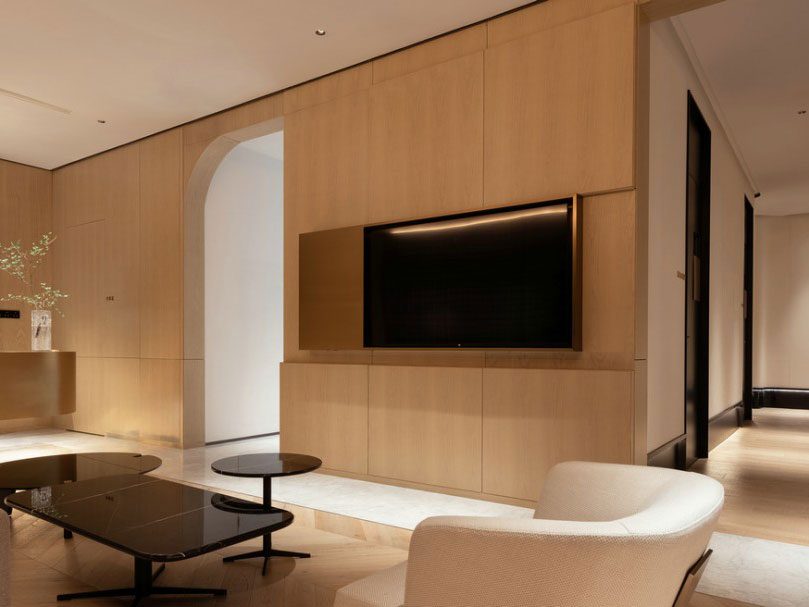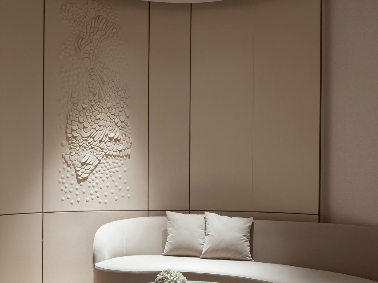 设计应是实用性与艺术性的唱和。以材料的甄选,色块的隐喻,营造出身体和情绪都得以沉浸其中的静谧意向,又轻逸出幽芳与清雅的尊贵感。